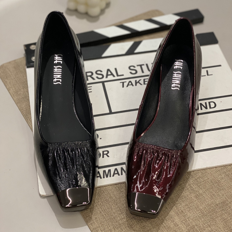 漆皮方头高跟鞋女2024秋新款法式
