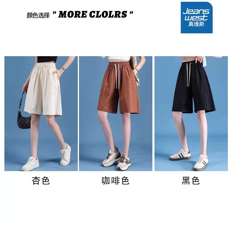 NW真维斯冰丝短裤女士夏季2025新款薄款宽松休闲运动女生五分裤子
