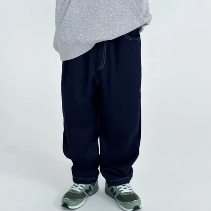 软糯蓝色加绒加厚牛仔卫裤