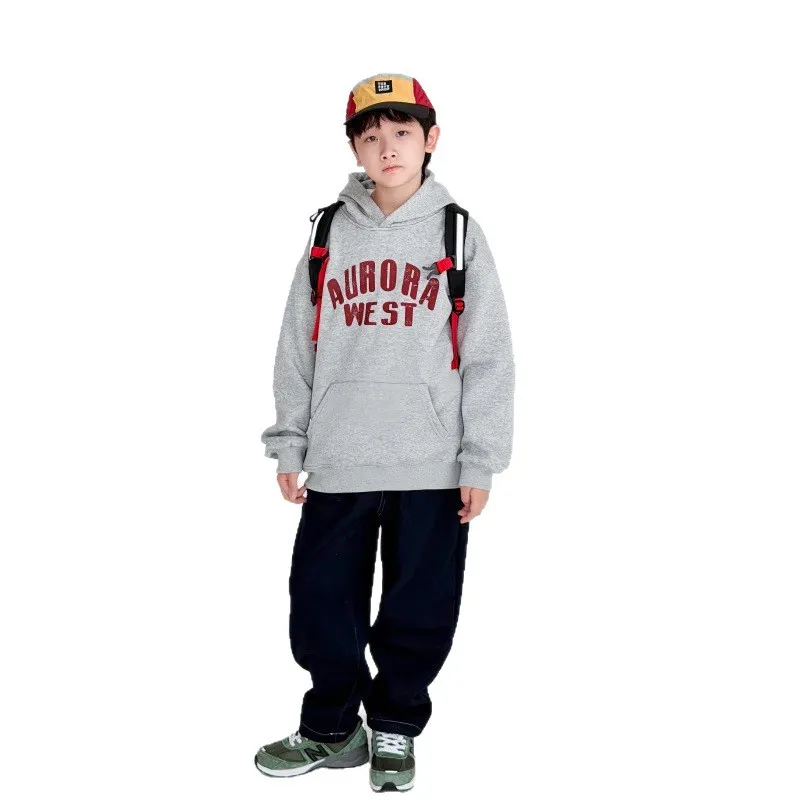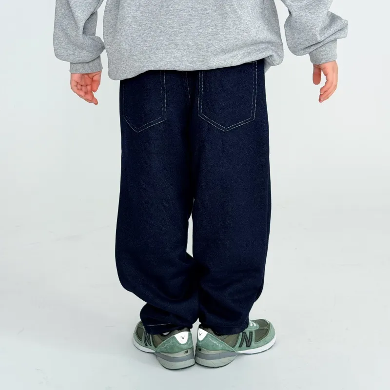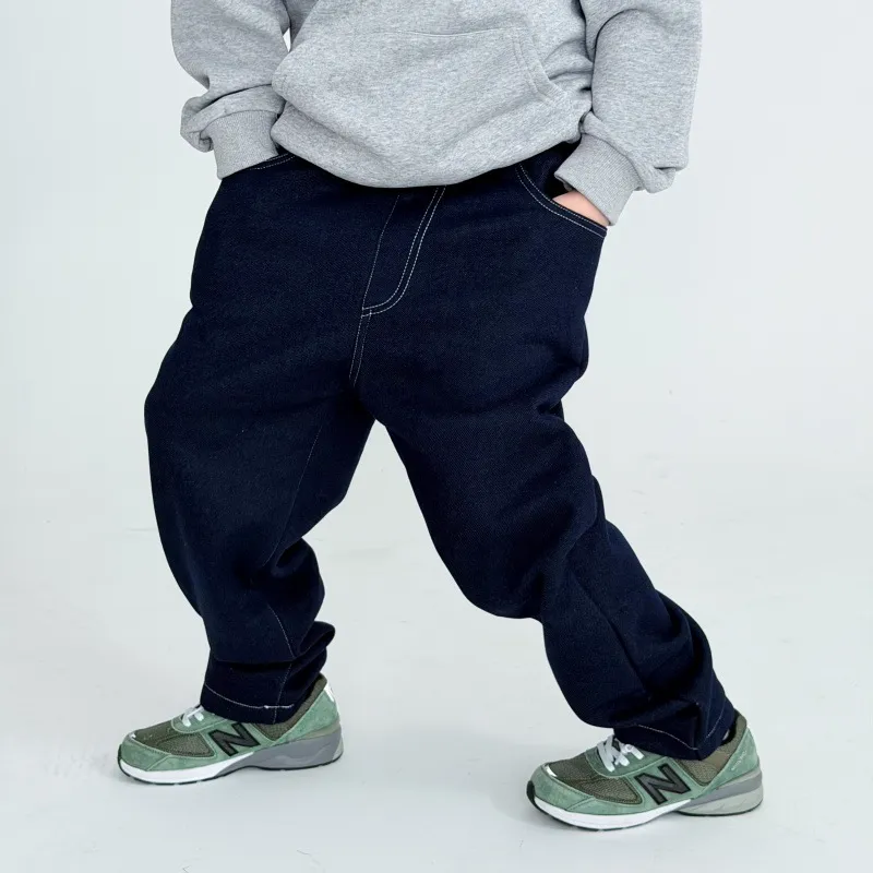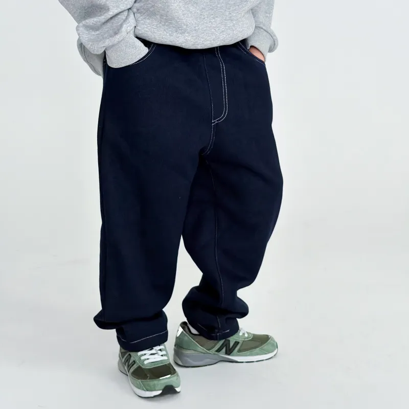 男宝宝洋气软糯蓝色加绒加厚牛仔卫裤潮冬季男童宽松休闲保暖长裤