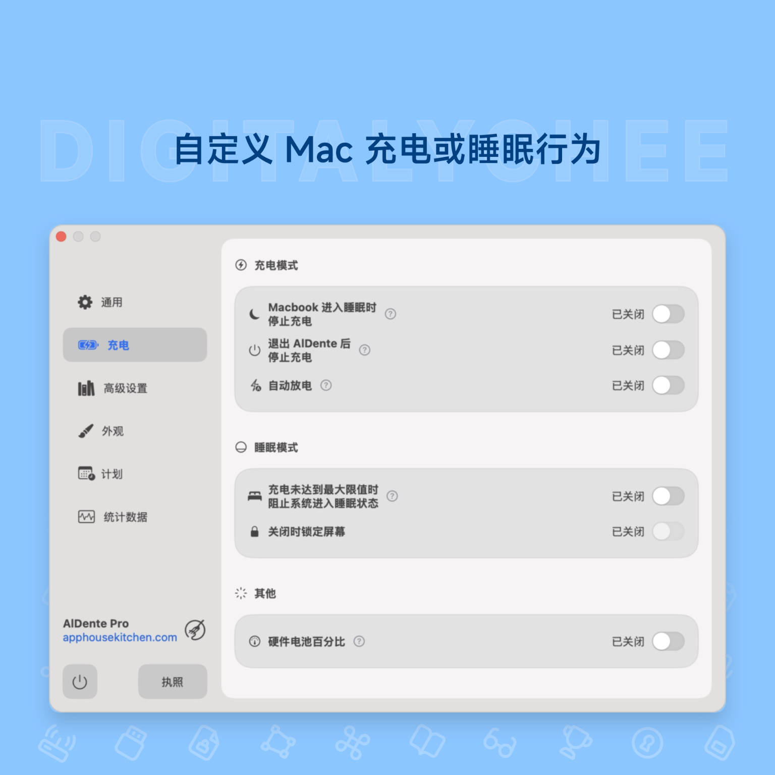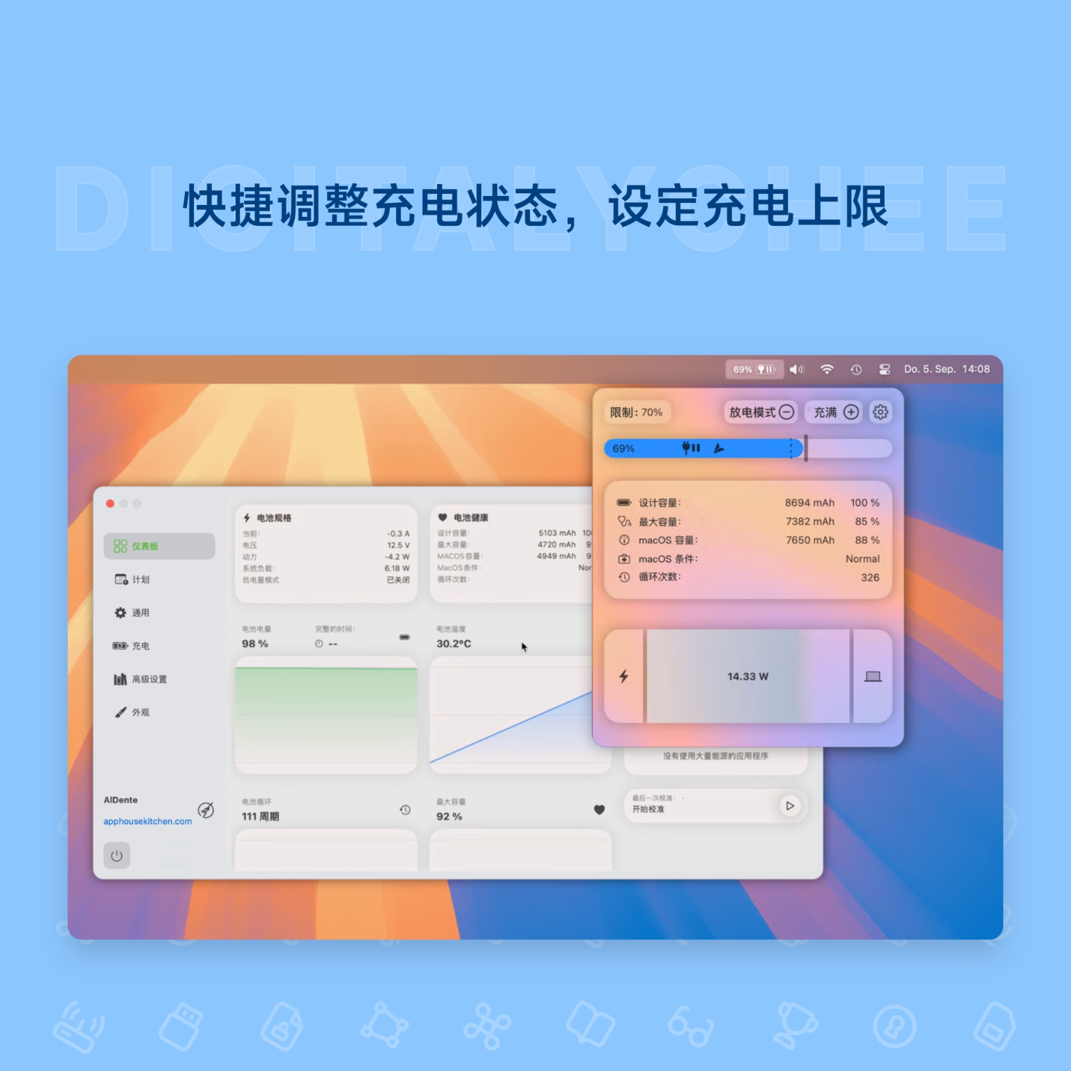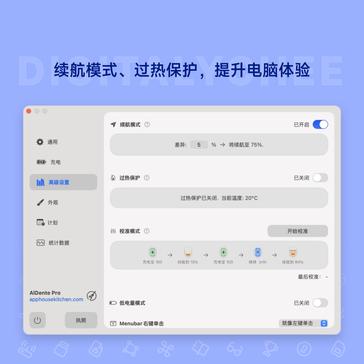 AlDente Pro[Mac]电池防过充保护 充电电量限制 Mac电脑过热保护