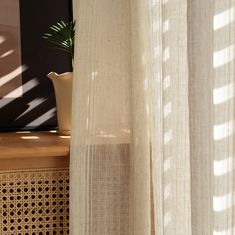 田园风小清新竖条纹棉麻纱帘透光不透人日式亚麻窗帘客厅薄纱窗纱