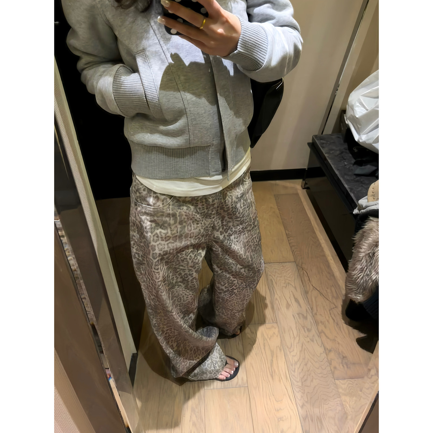 F383美式复古水洗做旧豹纹牛仔裤