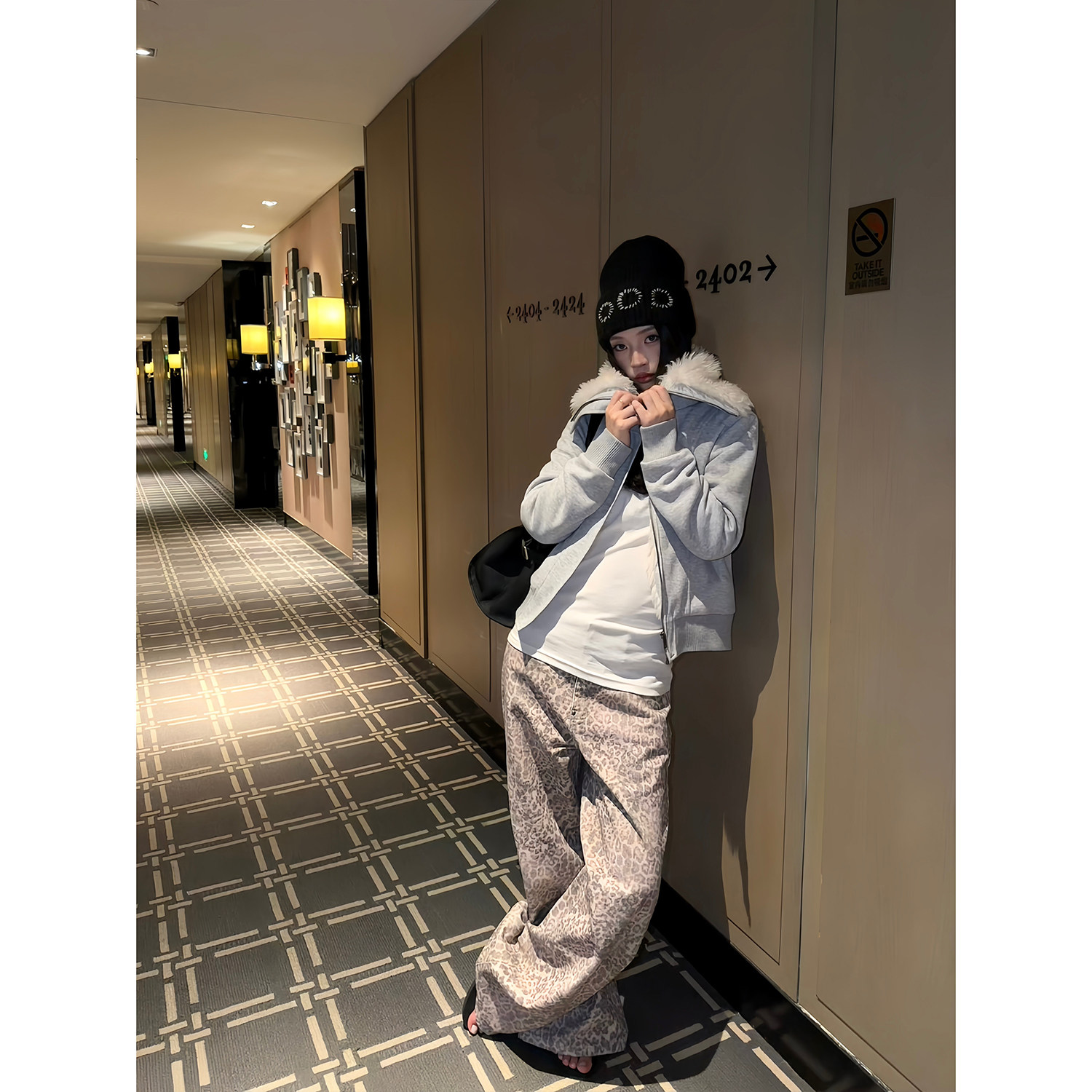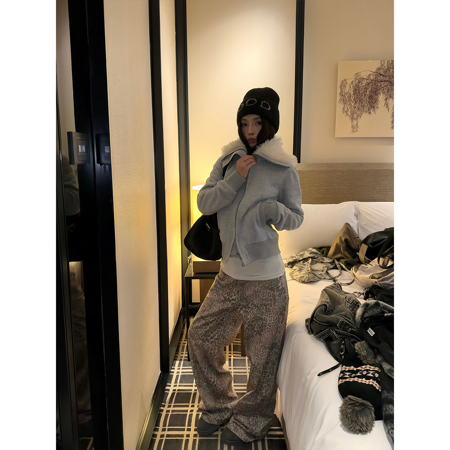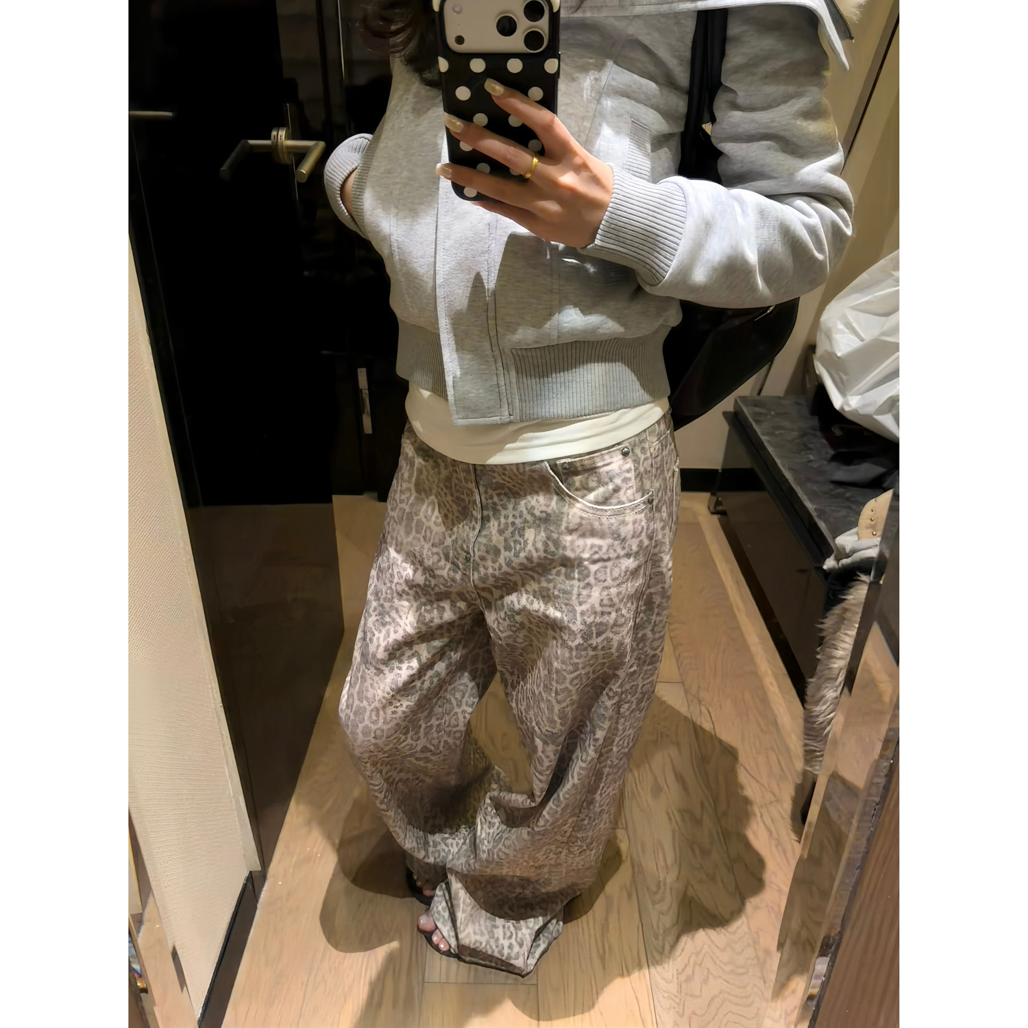 F383 美式复古水洗做旧豹纹牛仔裤男女潮牌宽松直筒休闲显瘦裤子