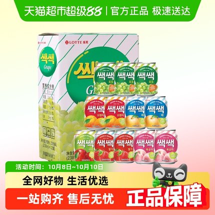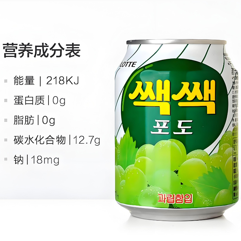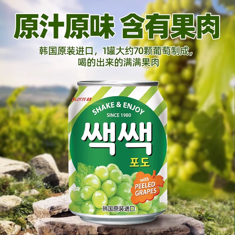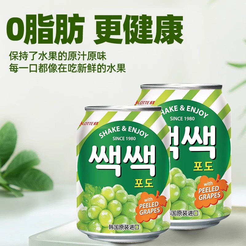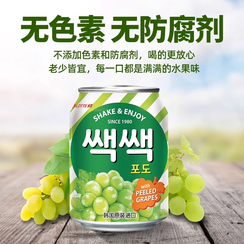 韩国进口乐天葡萄汁饮料网红果汁芒果汁罐装易拉罐整箱低脂