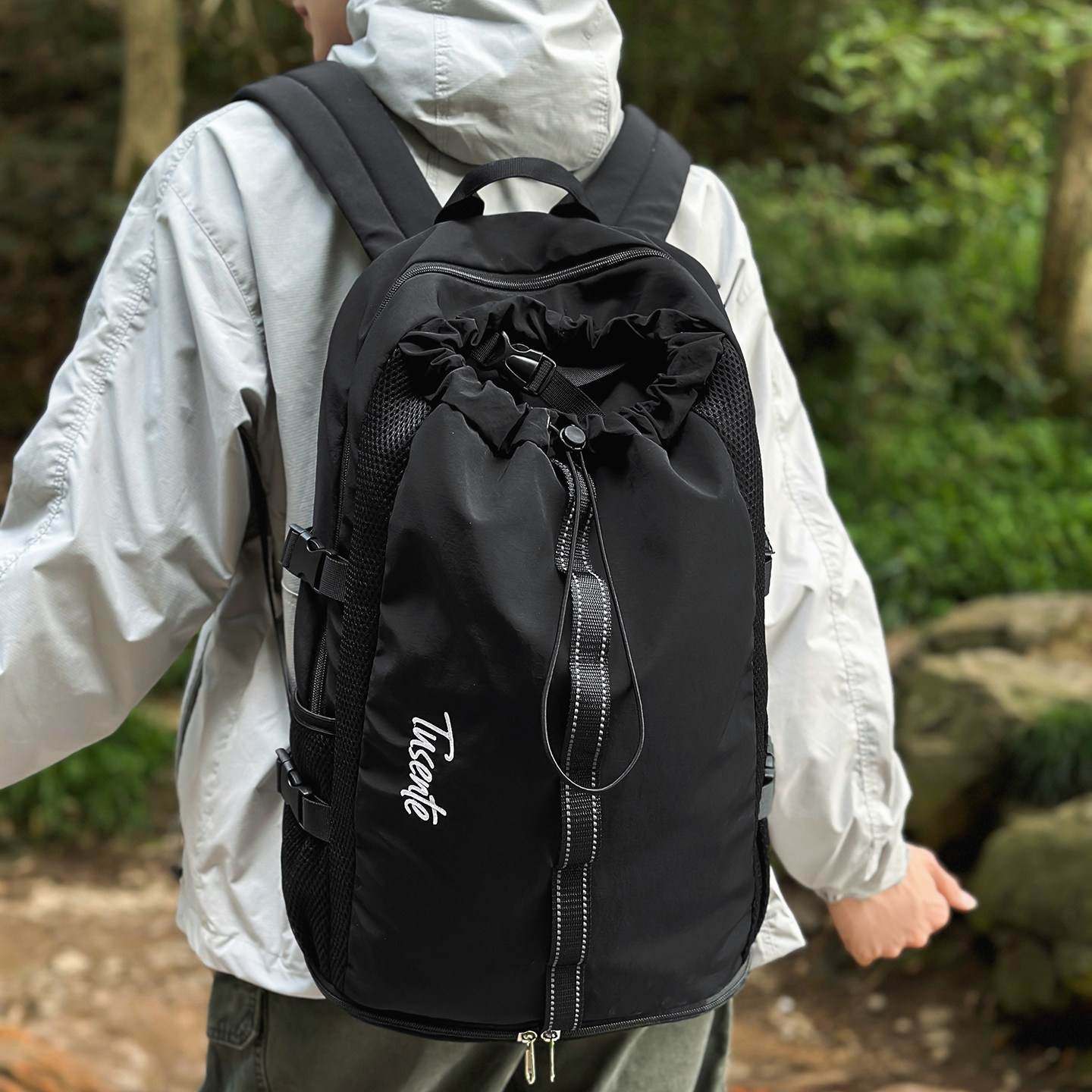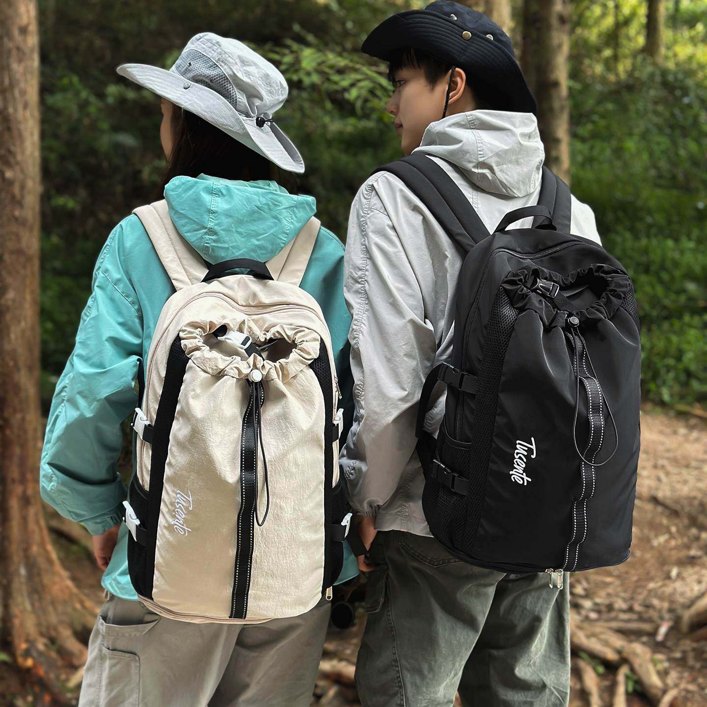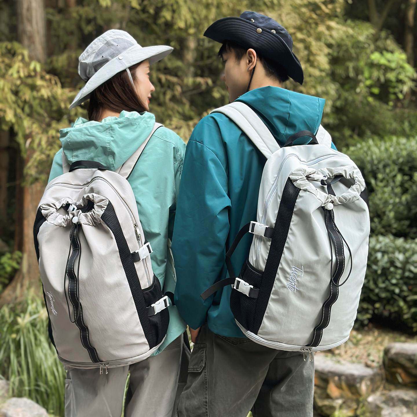 运动轻便羽毛球包大容量抽绳束口双肩包短途出行旅行背包学生书包
