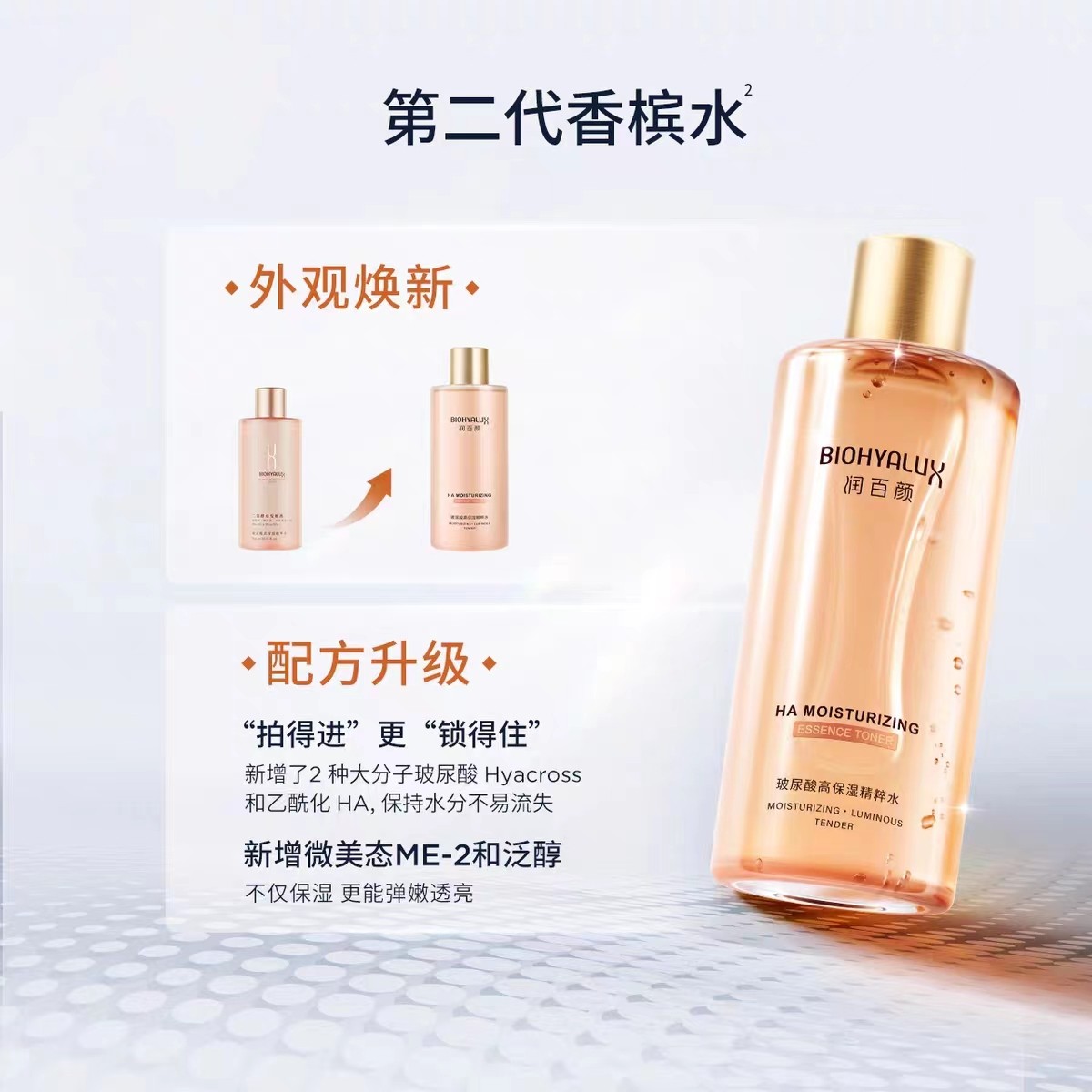 华熙生物润百颜香槟水玻尿酸高保湿面部精粹水300ml爽肤精华水