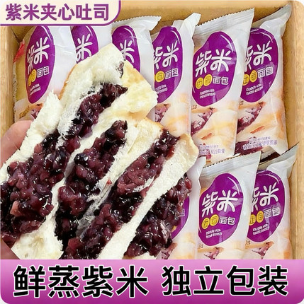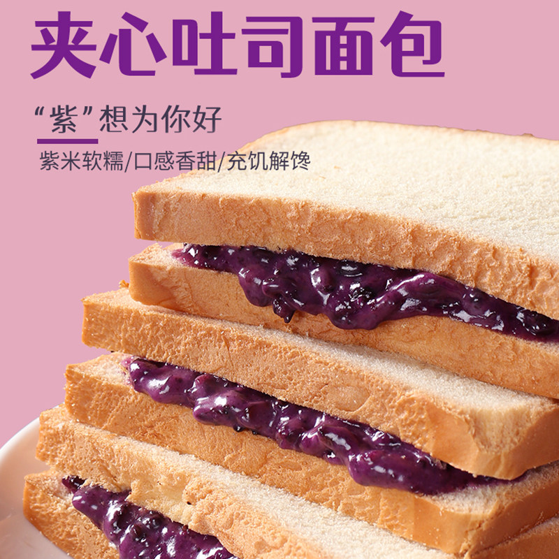 紫米面包夹心吐司早餐爆浆软面包一整箱营养餐养零食混合面包紫米