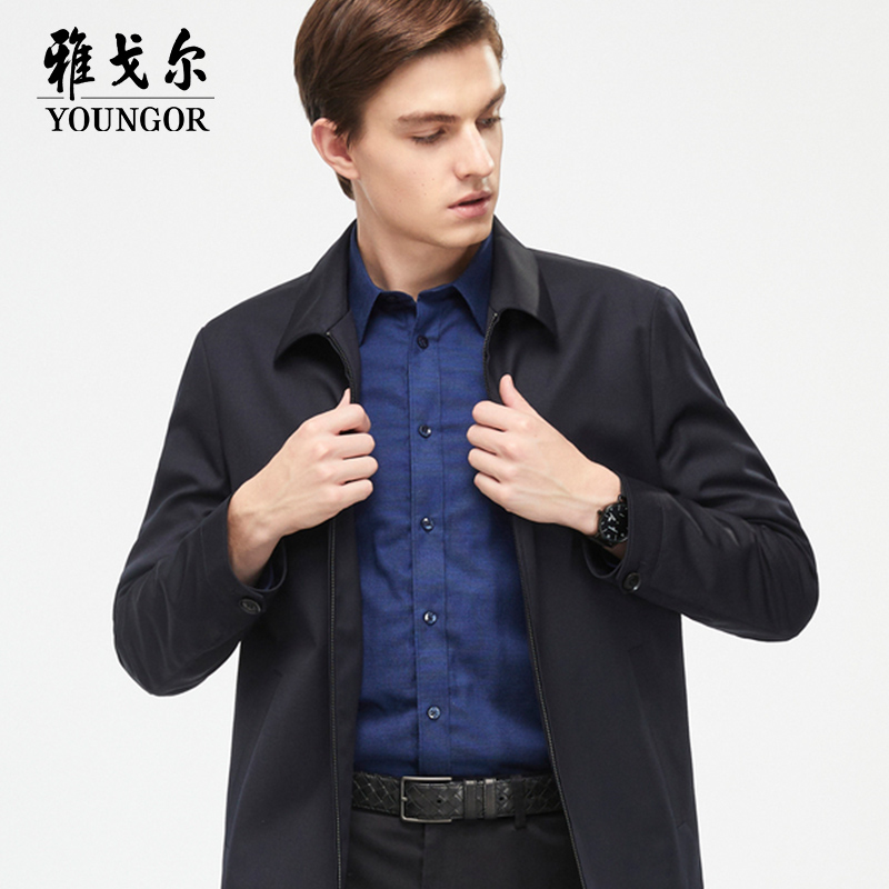 【羊毛】雅戈尔男士夹克秋冬新款商务休闲修身上班翻领短外套