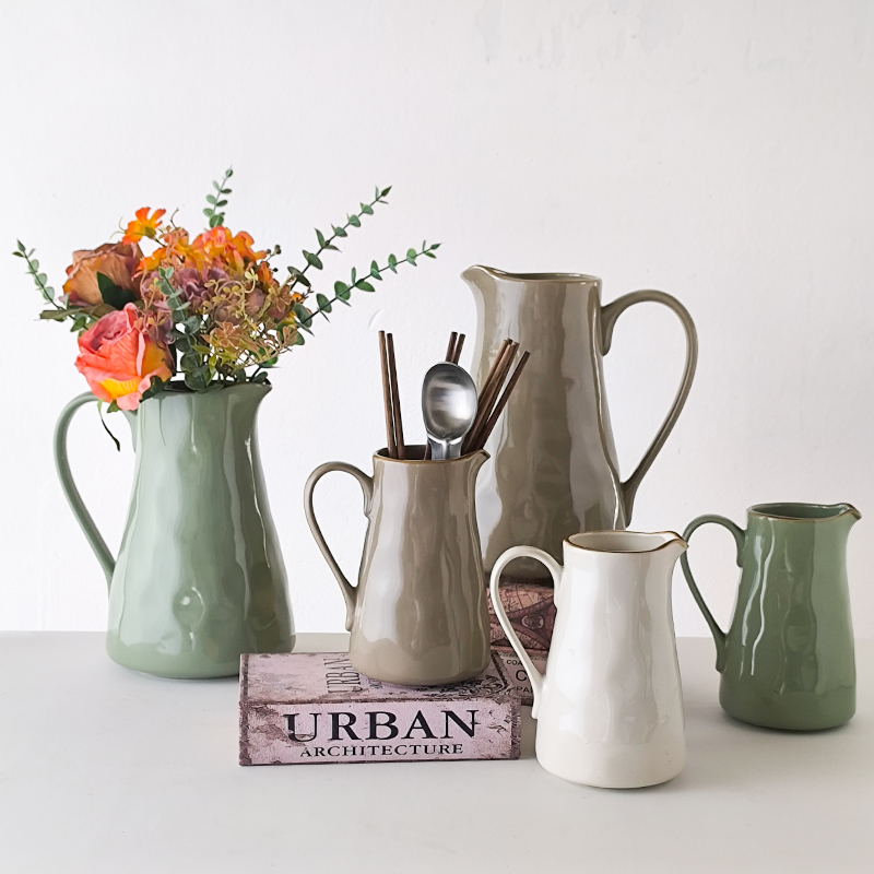 古典又时尚复古水纹陶瓷大花瓶玄关摆件插花器凉简约水壶微瑕