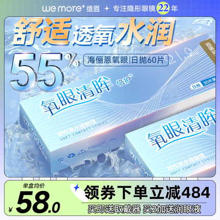 海俪恩氧眼清眸日抛60片隐形近视眼镜一次性透明片学生小直径