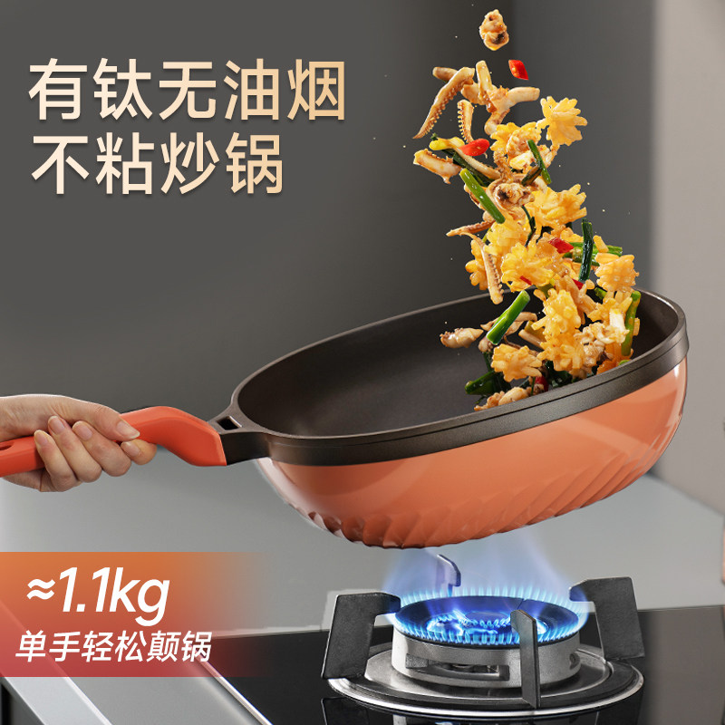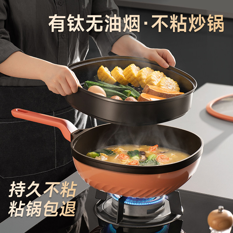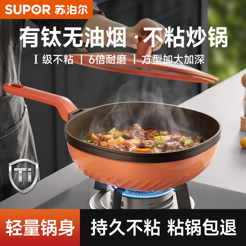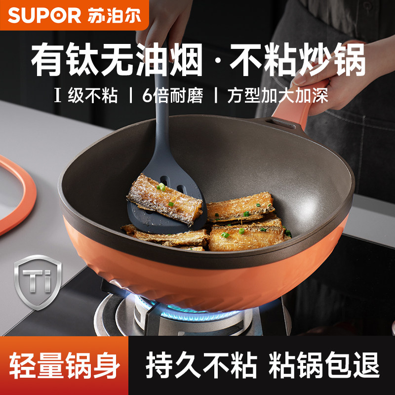苏泊尔有钛不粘锅家用炒锅无油烟方型炒菜锅电磁炉燃气灶通用