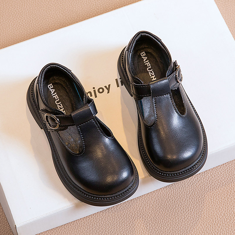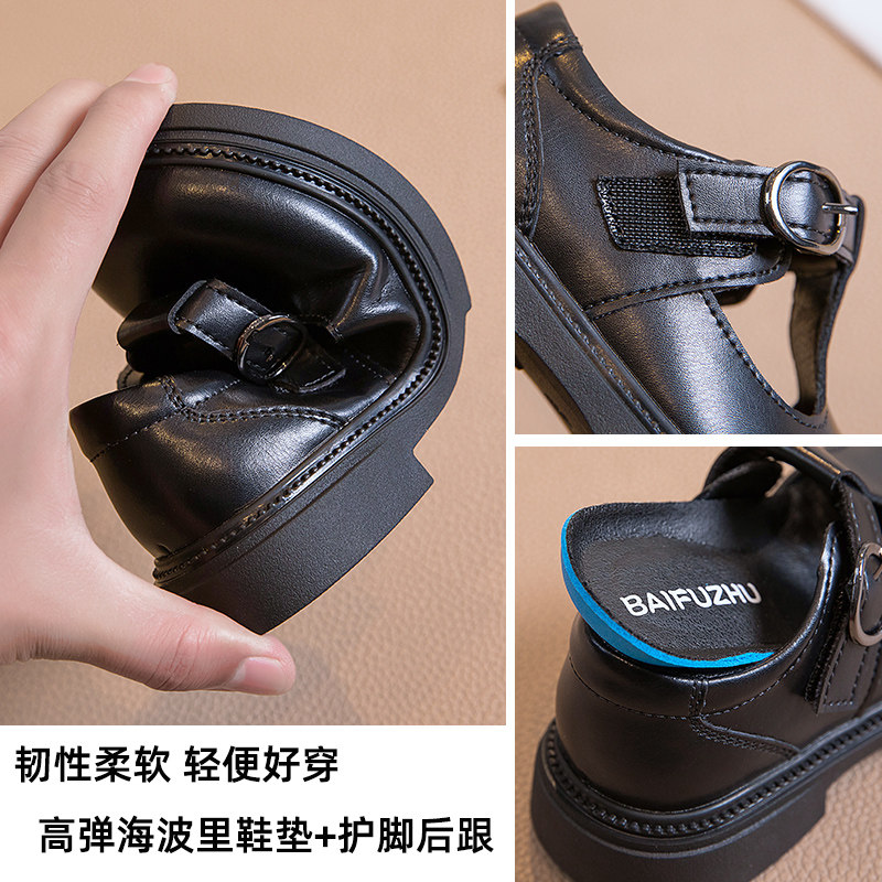 女童黑色皮鞋真皮英伦新款春秋儿童软底白色小学生女孩公主表演出