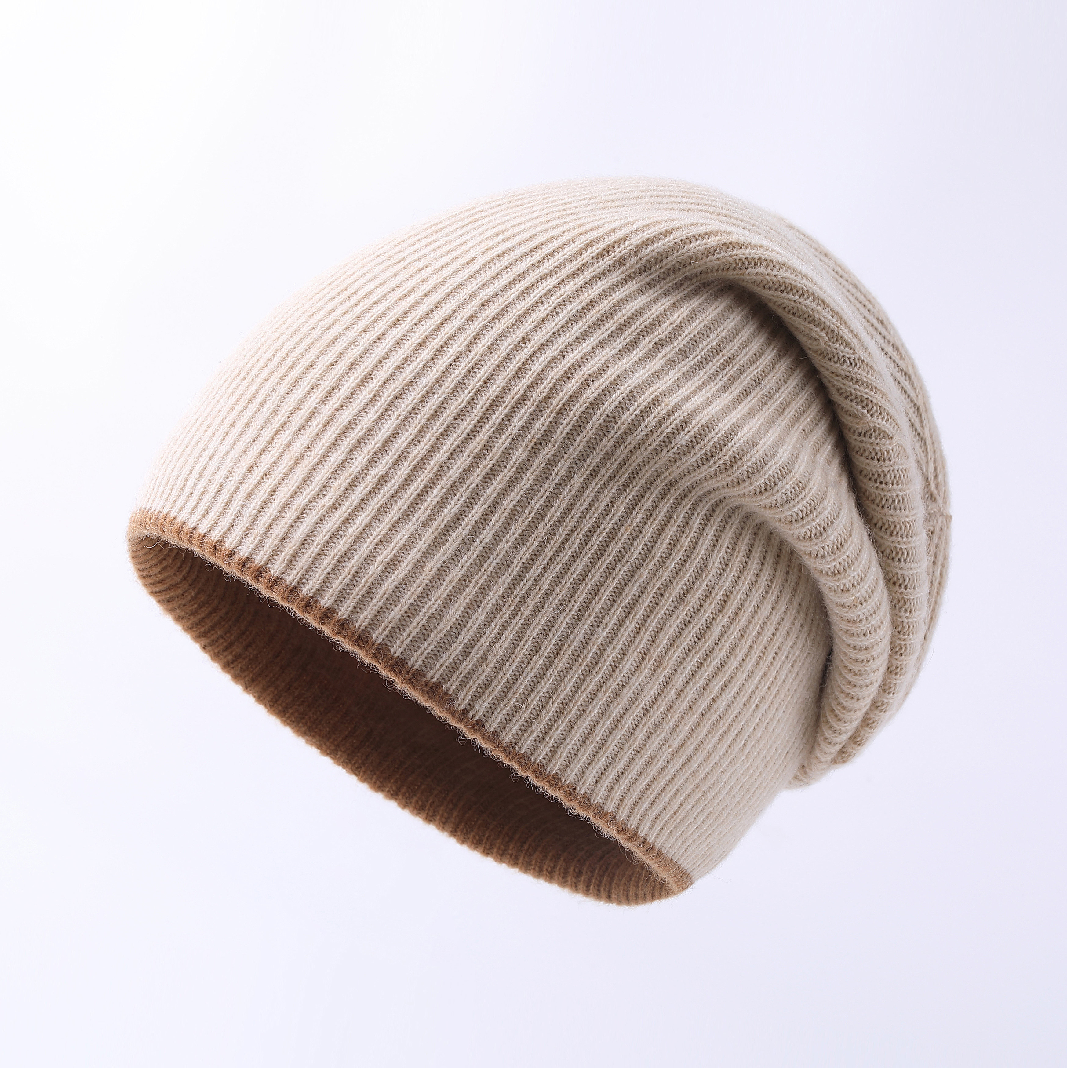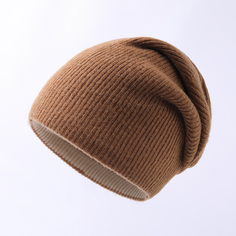 100%绵羊毛帽子男女秋冬天双层纯色冷帽针织毛线帽双面戴时尚休闲