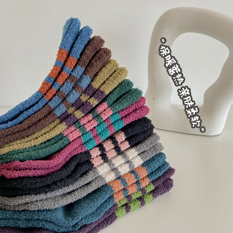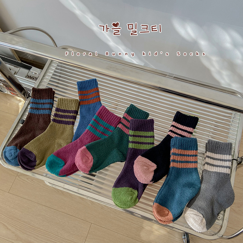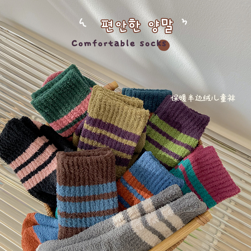 儿童袜子秋冬季珊瑚绒加厚袜子宝宝保暖袜男童女童韩国拼色中筒袜