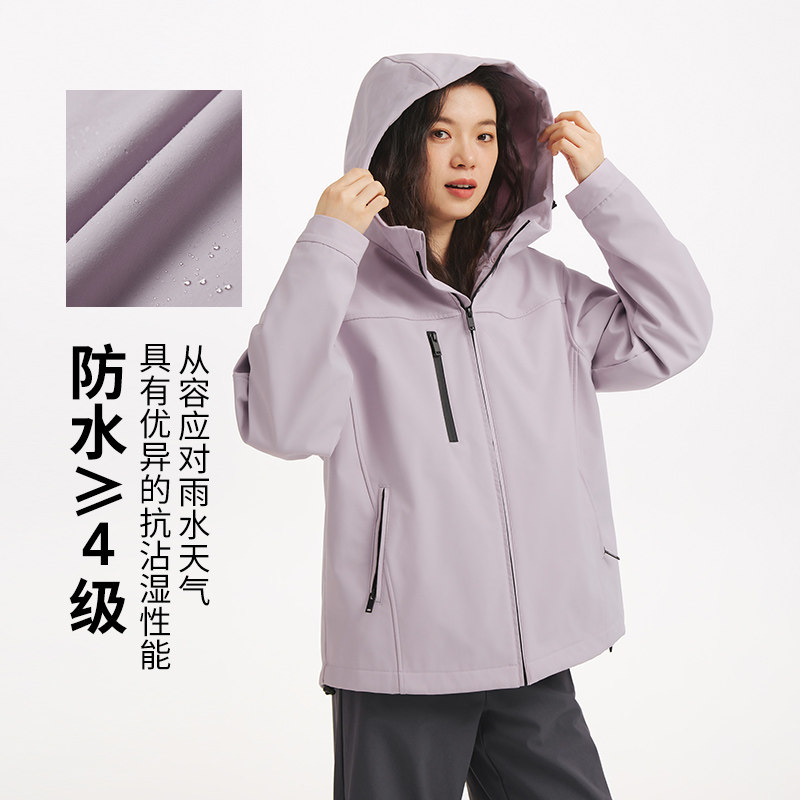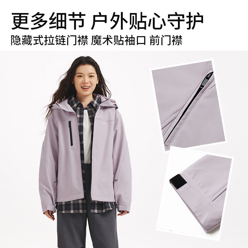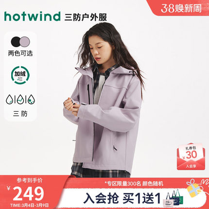 热风女士户外夹克外套2025年秋冬新款三防保暖加绒连帽休闲外套
