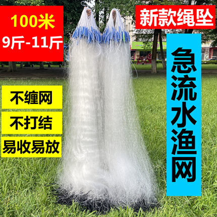 新款急流水绳坠渔网三层鱼网粘网丝网粘鱼网加重绳坠沉网白条鲫鱼