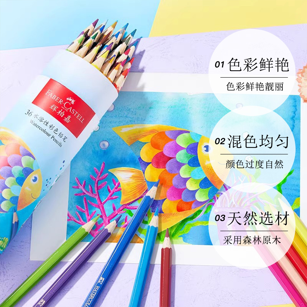 【自营】辉柏嘉彩铅笔小学生专用48色水溶彩色铅笔美术生画画手绘24/36色儿童用筒装画画笔初学者绘画套装