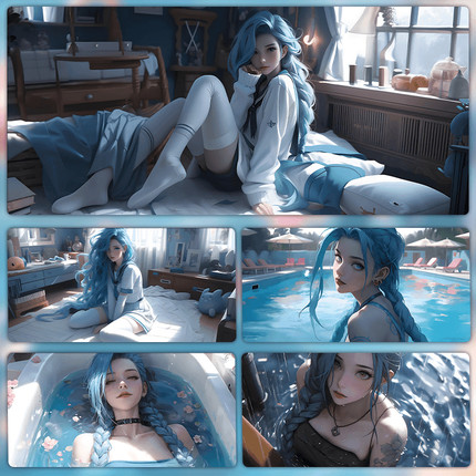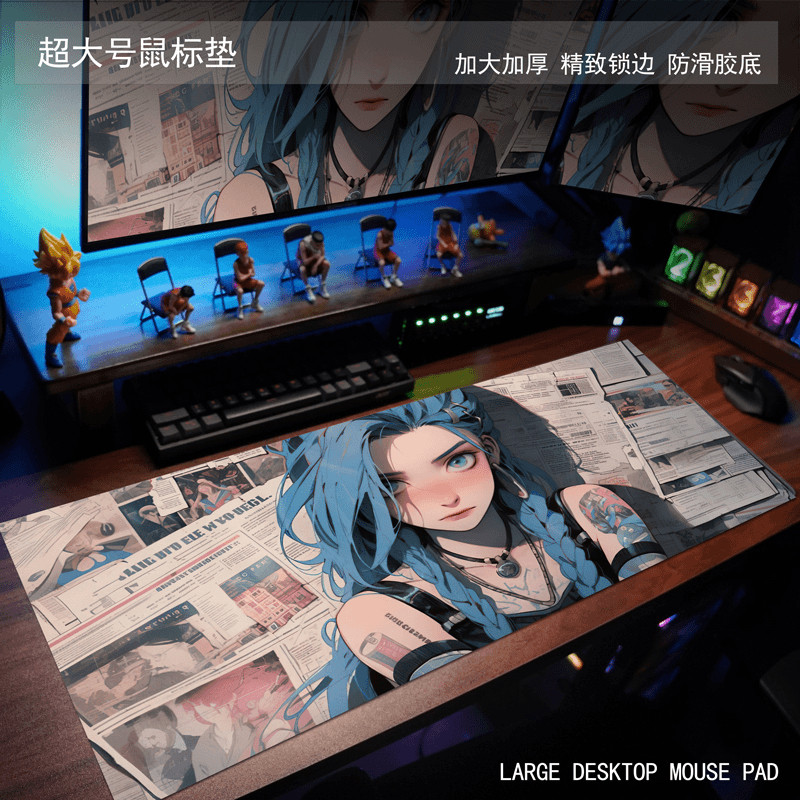 金克丝鼠标垫超大号男生电竞游戏垫桌面动漫二次元英雄联盟家用