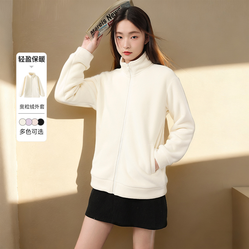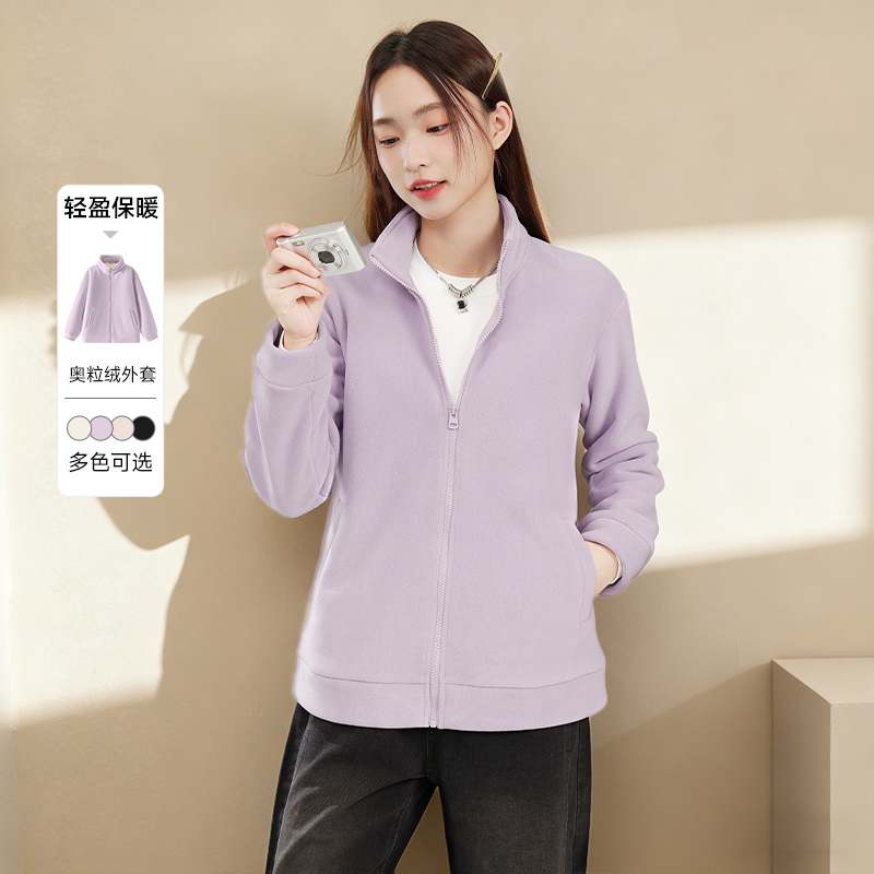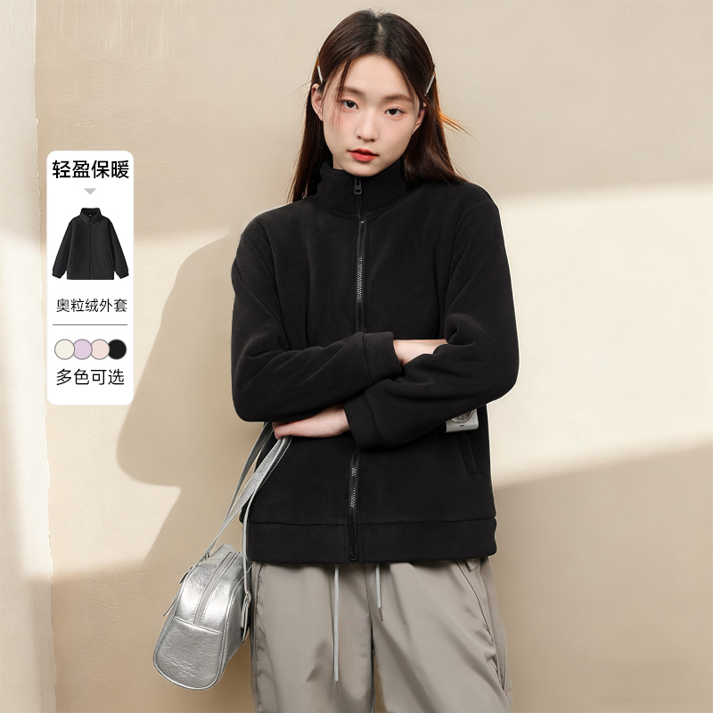 NOW真维斯摇粒绒外套女秋冬2025新款加绒加厚冲锋衣内胆立领开衫