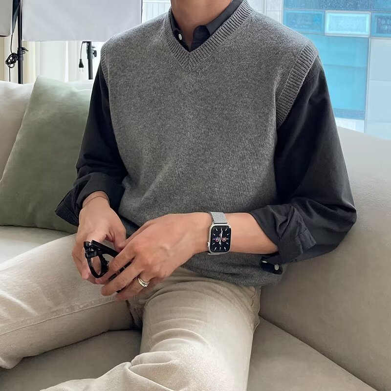 潮流时尚无袖坎肩纯色针织衫毛衣男马甲背心V领叠穿打底衫潮