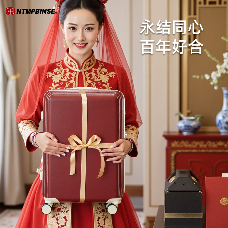 瑞士军刀结婚红色行李箱女新娘陪嫁箱万向轮皮箱子旅行箱拉杆箱