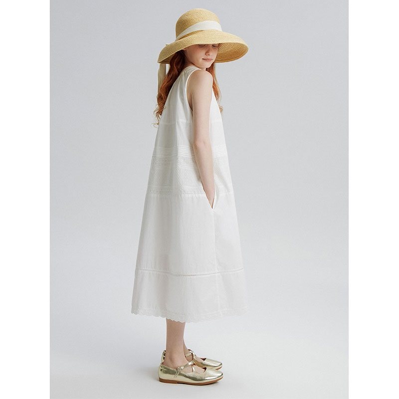 女童连衣裙长裙无袖显瘦小个子学生浪漫刺绣夏花边背心裙