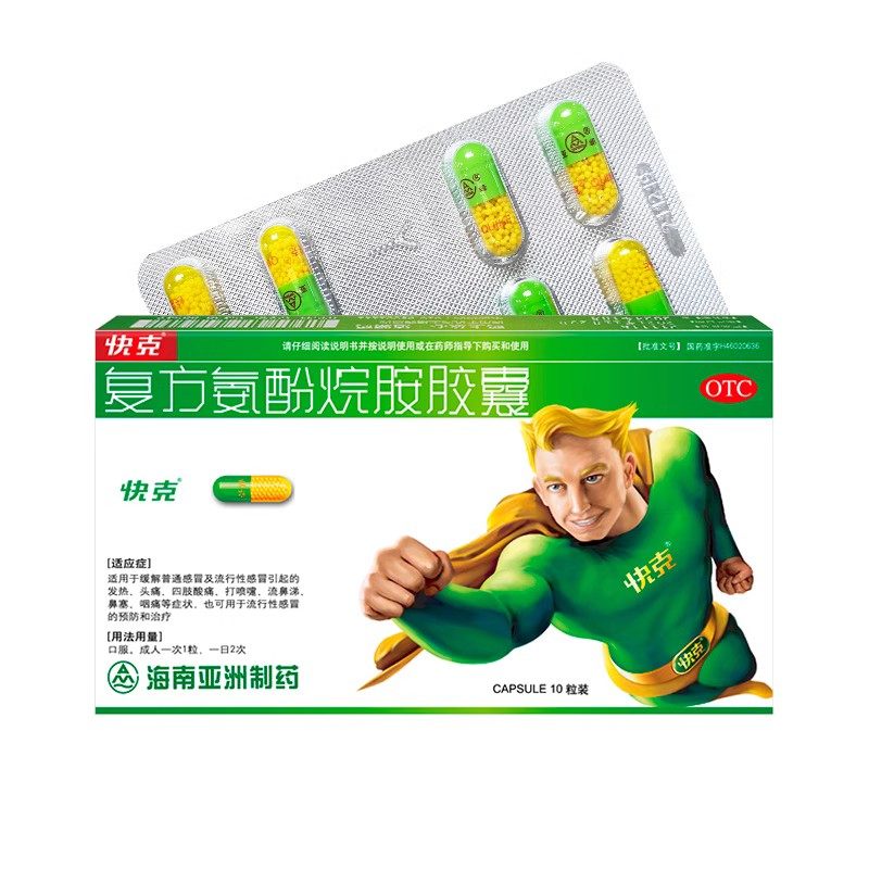 快克 复方氨酚烷胺胶囊 10粒 感冒胶囊 咳嗽鼻塞发热流行性感冒药