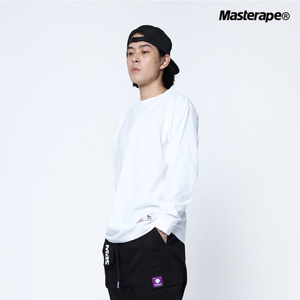 Masterape潮牌宽松圆领纯色打底重磅美式纯棉男女国潮长袖T恤