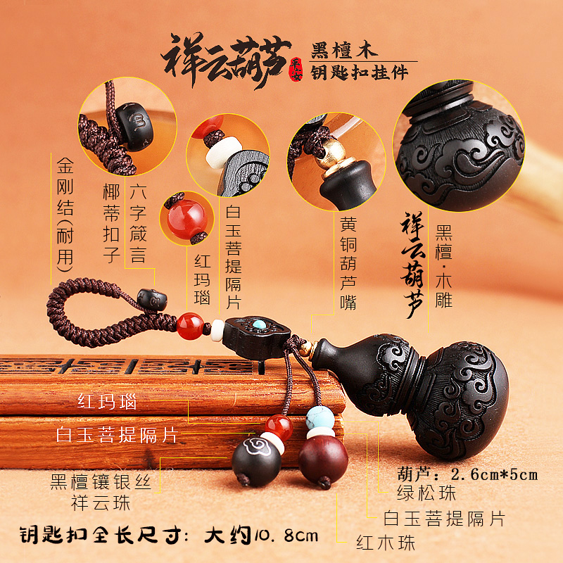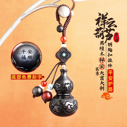 檀木葫芦汽车钥匙扣挂件黑紫檀木质挂饰吊坠男女士保平安钥匙链绳