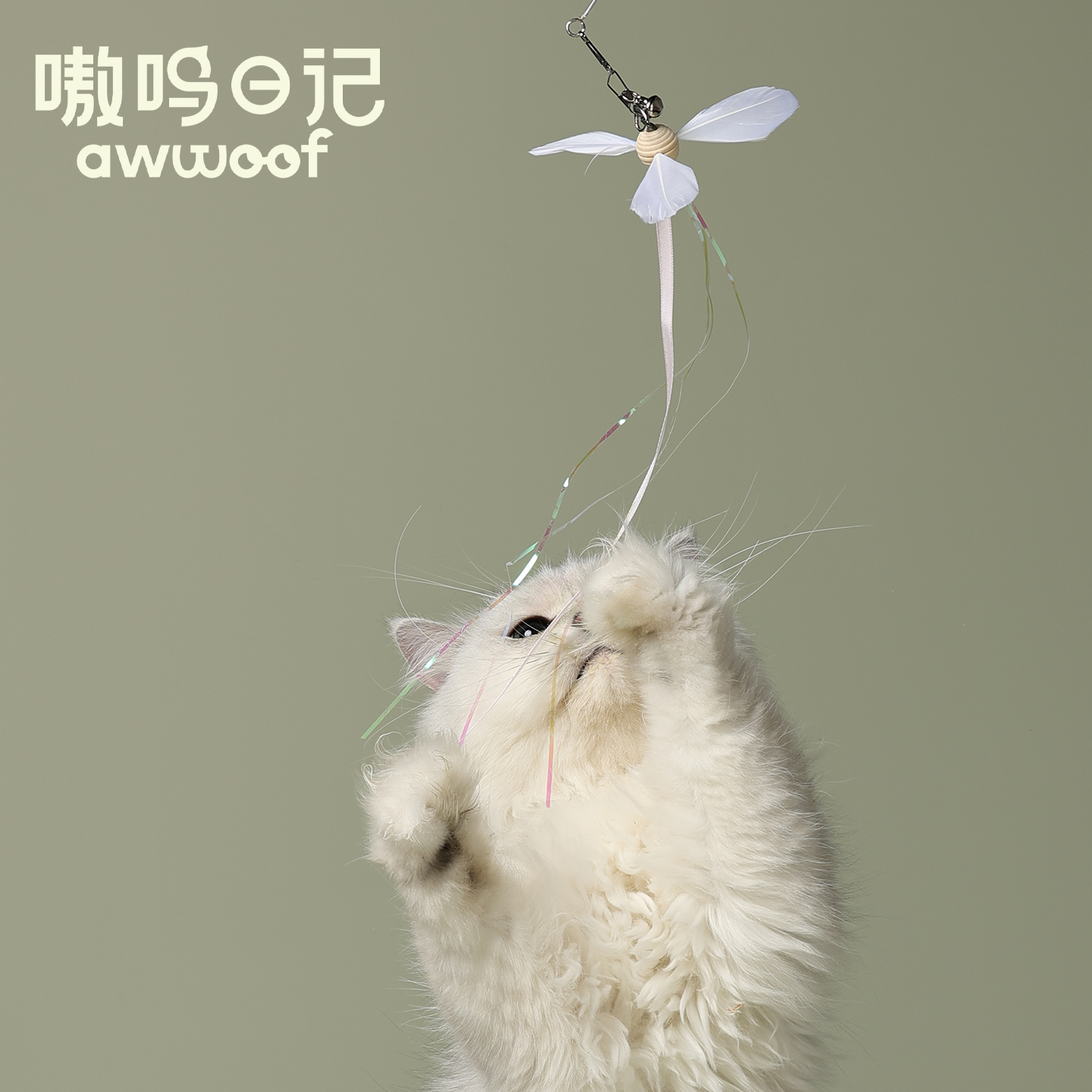嗷呜日记晴天逗猫棒超长伸缩杆原生羽毛铃铛彩色响纸耐咬猫咪用品