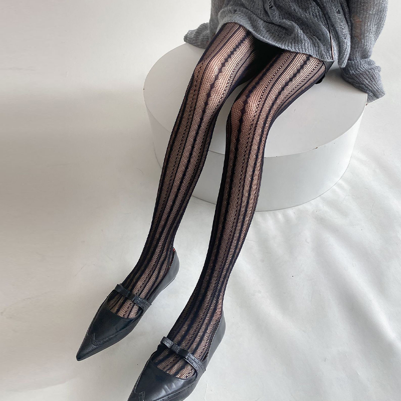 春夏新品菱格竖纹网袜复古芭蕾风条纹麻花纯欲风显瘦连裤袜女