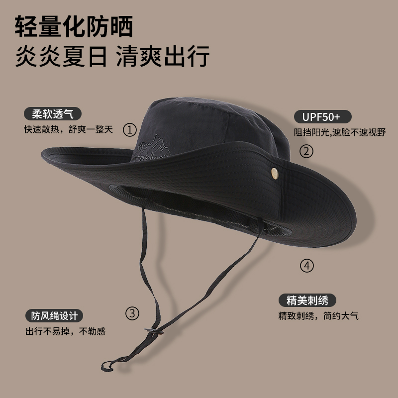 西部牛仔登山帽渔夫帽爬山沙漠防晒帽女户外太阳男遮阳大帽檐帽子