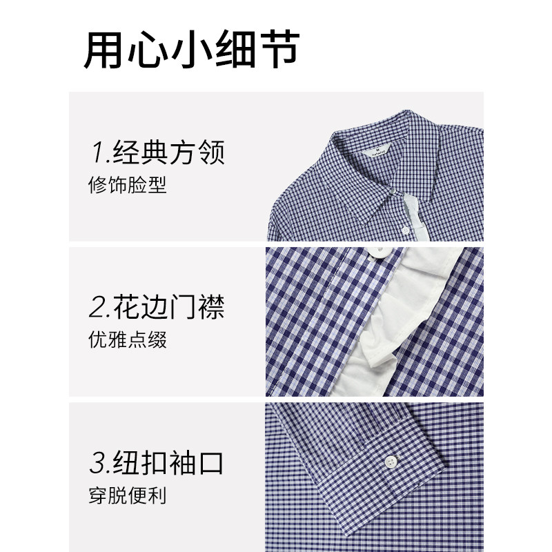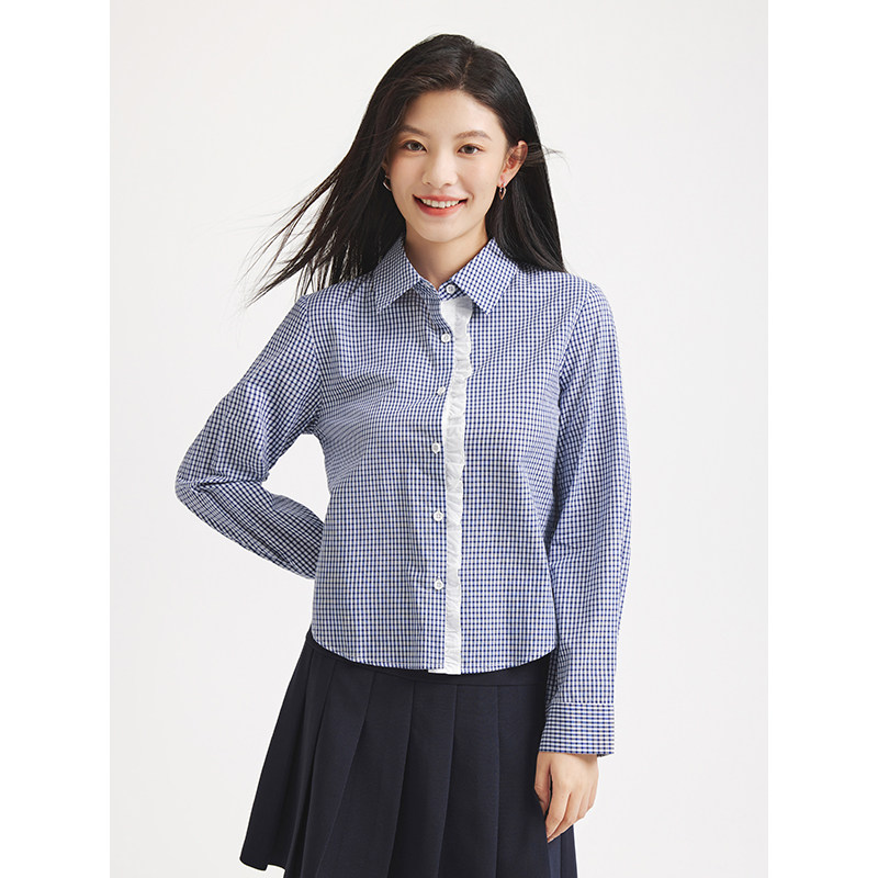 25年秋季新款女士花边格纹衬衫