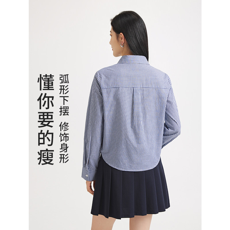 热风miu系女士格纹长袖衬衫上衣2025年秋季新款花边格纹打底上衣