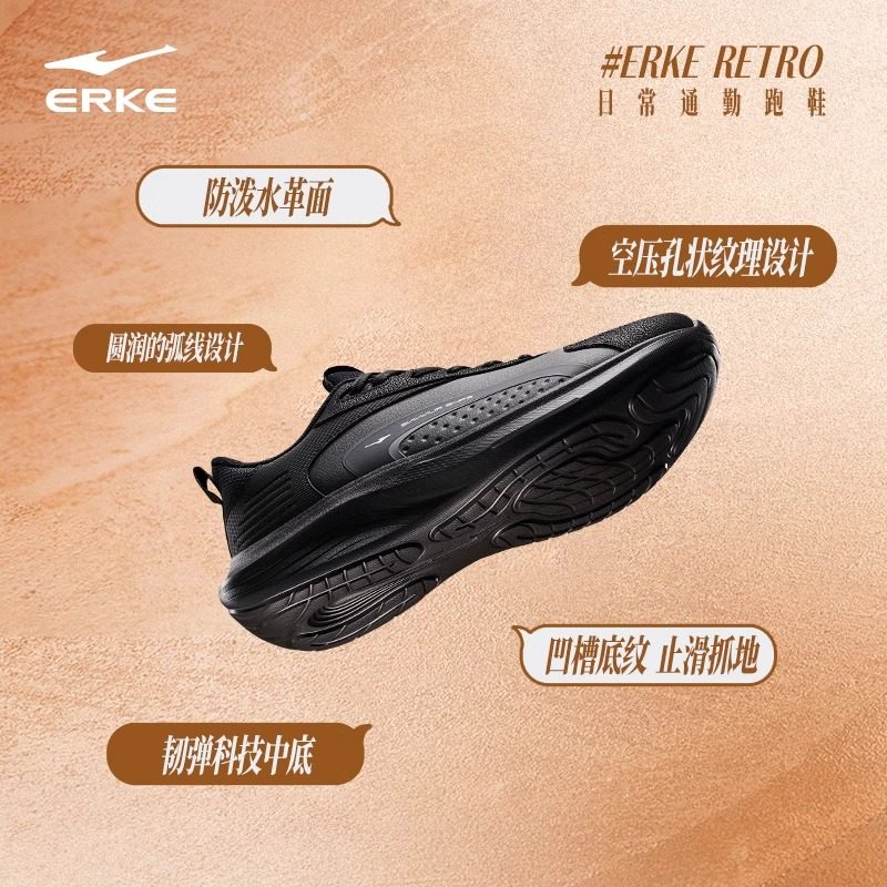 鸿星尔克男鞋2026新款防水运动鞋男款黑武士轻便软底黑色跑步鞋子