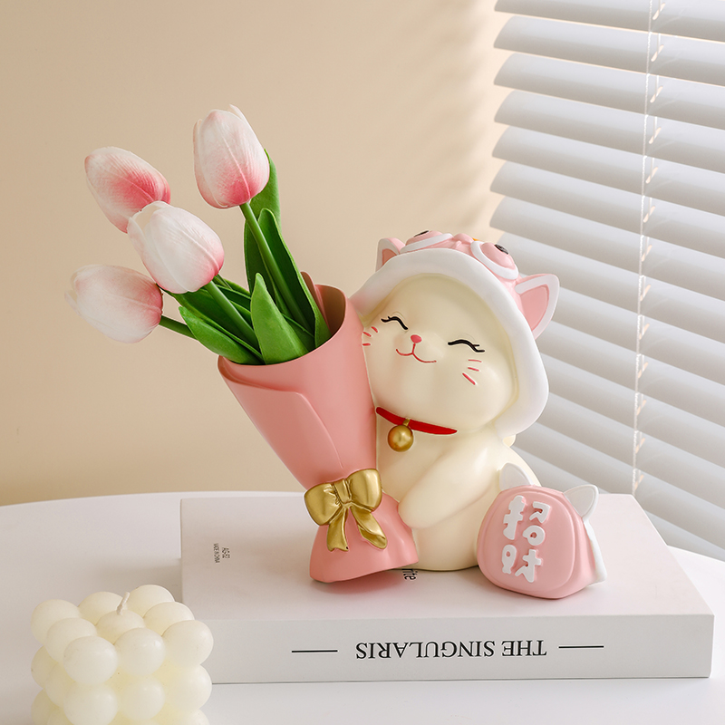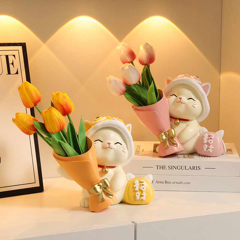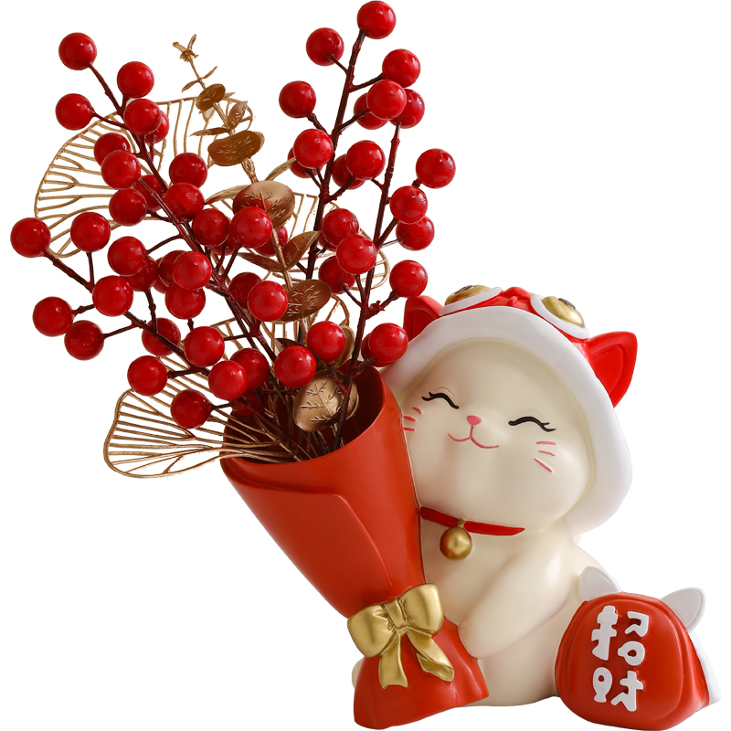 新年装饰摆件捧花招财猫玄关轻奢高档家居客厅电视柜桌面过年氛围
