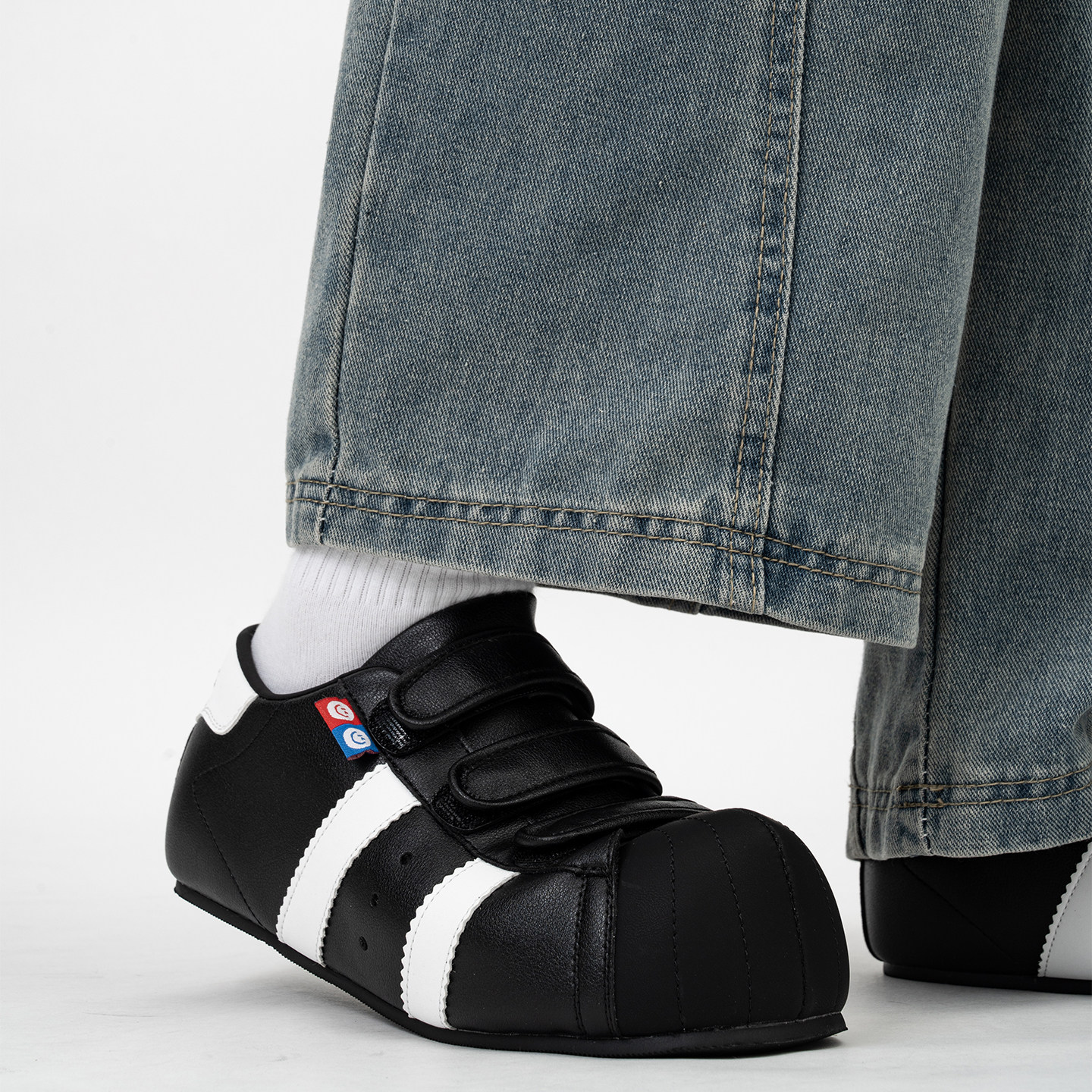 小众魔术贴丑萌大头鞋男女白色休闲复古德训鞋厚底增高贝壳头板鞋