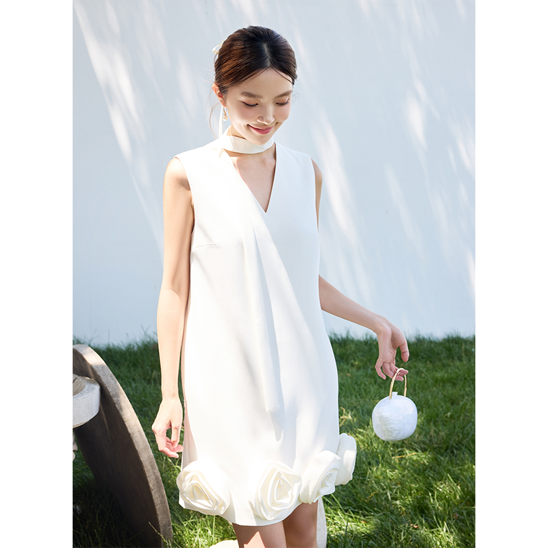 何蓝逗同款YES BY YESIR叶谦原创设计师25夏玫瑰庄园飘带连衣裙