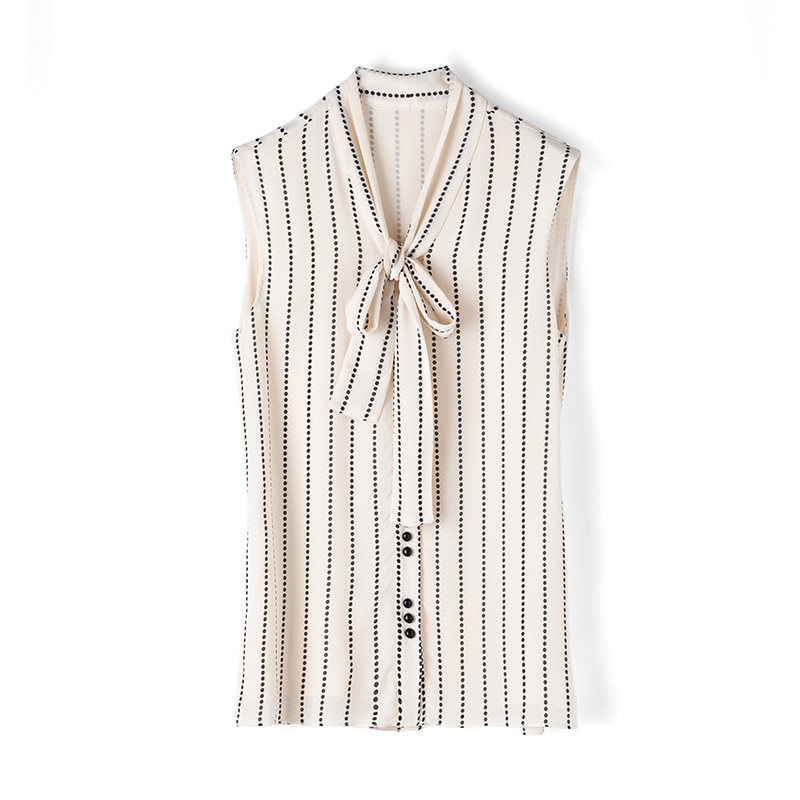 无袖衬衫女条纹v领背心上衣宽松雪纺衫法式蝴蝶结衬衣2025夏新款