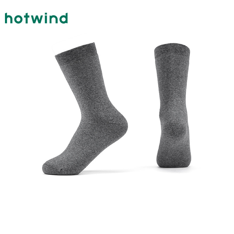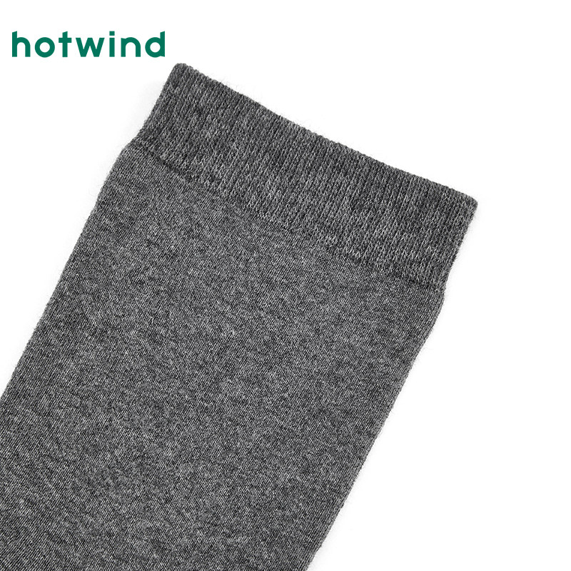 热风男士袜子2025年冬季新款素色全毛圈高帮袜百搭深灰色中筒袜子