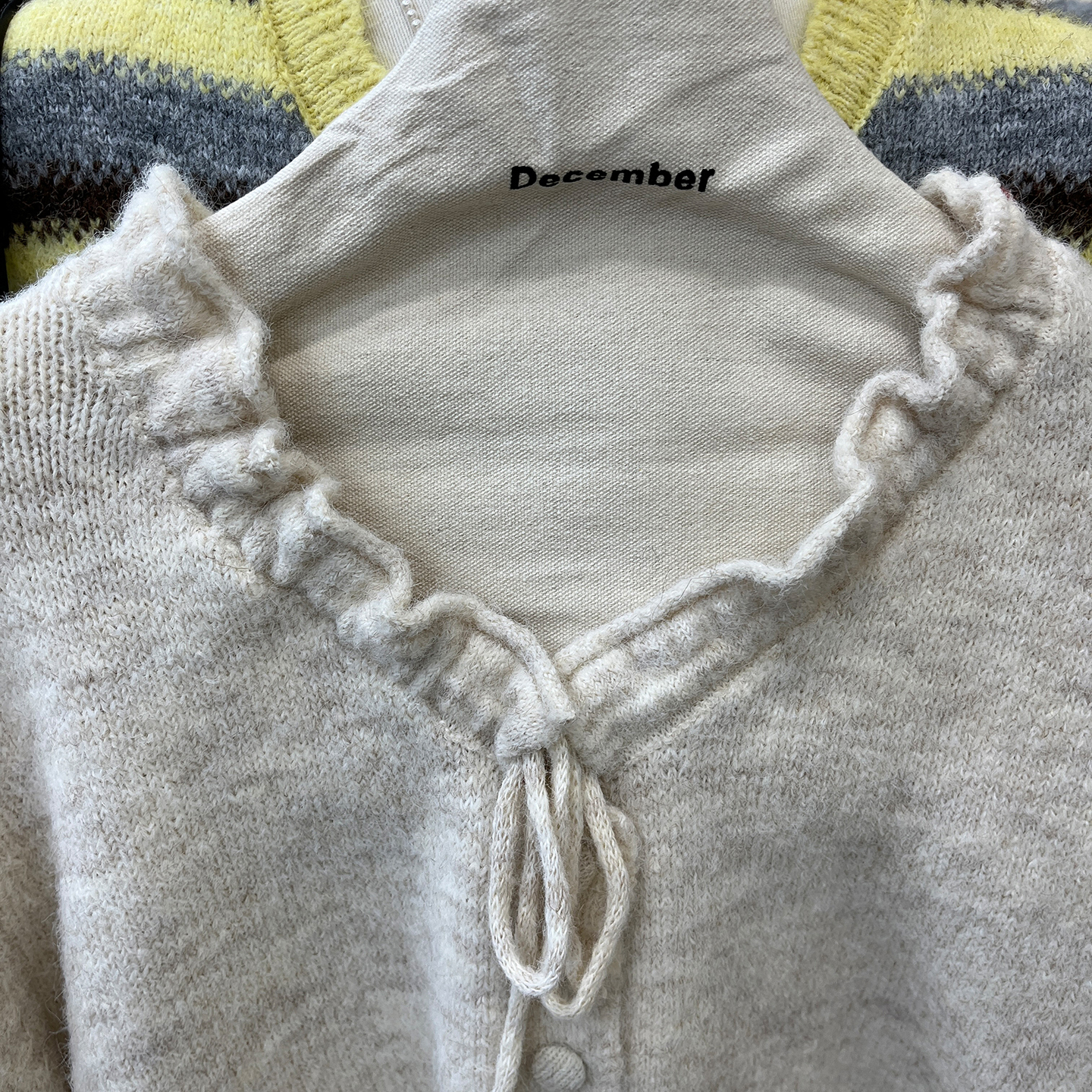 December十三行女装新款韩系秋季流行风格领口系带短款毛衣开衫女