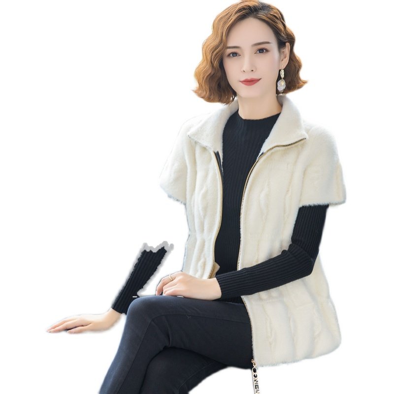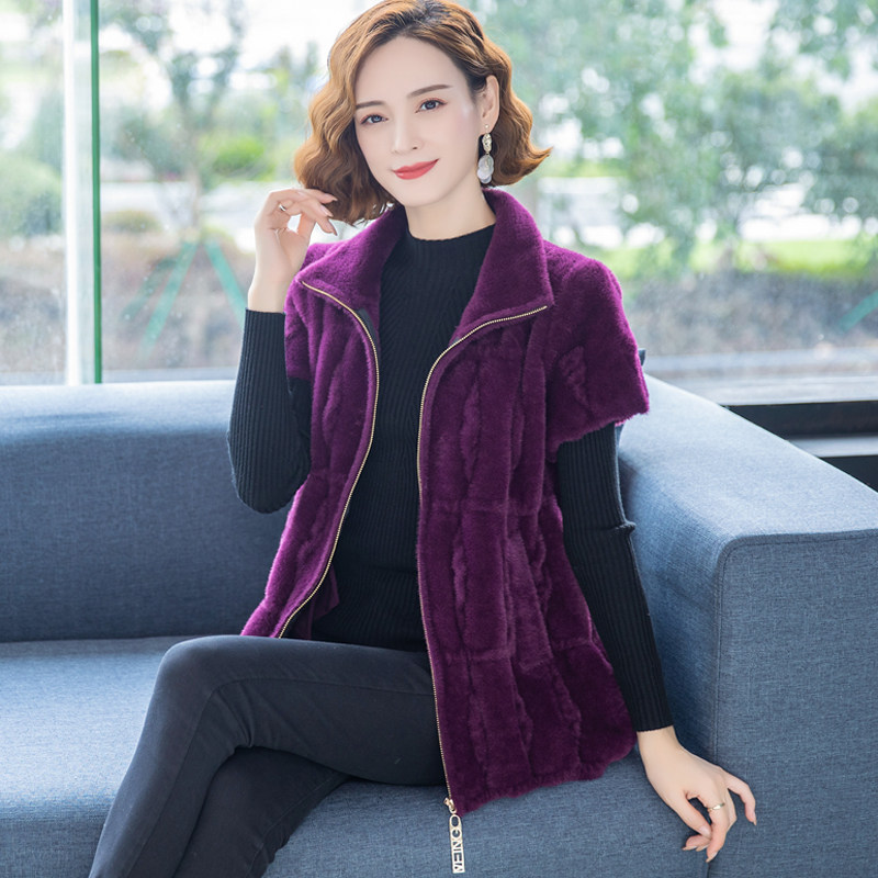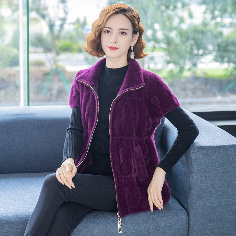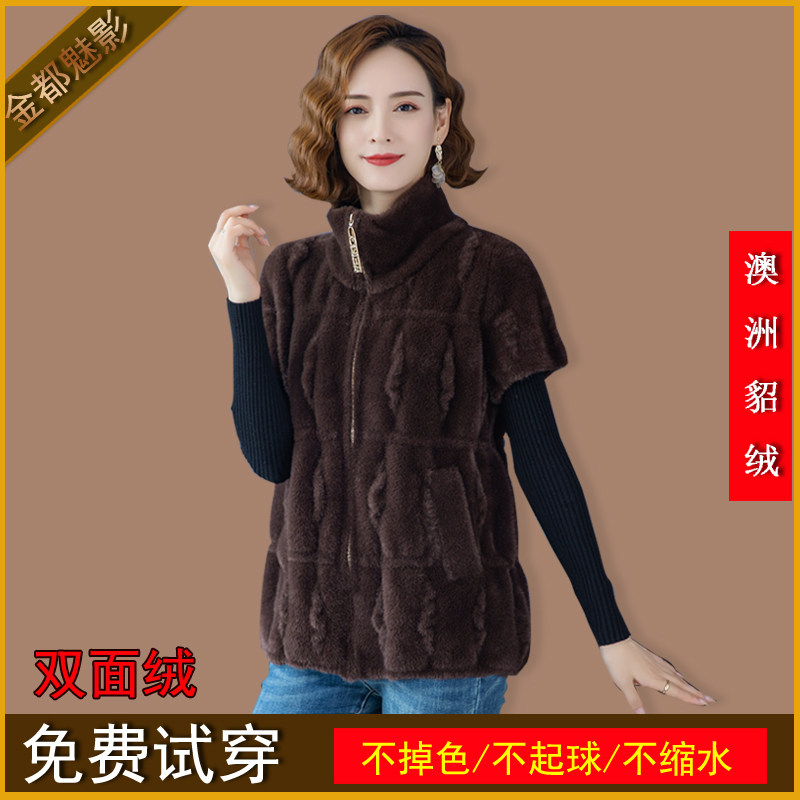 妈妈秋装新款马夹针织开衫半袖加厚背心仿水貂绒中老年女装坎肩