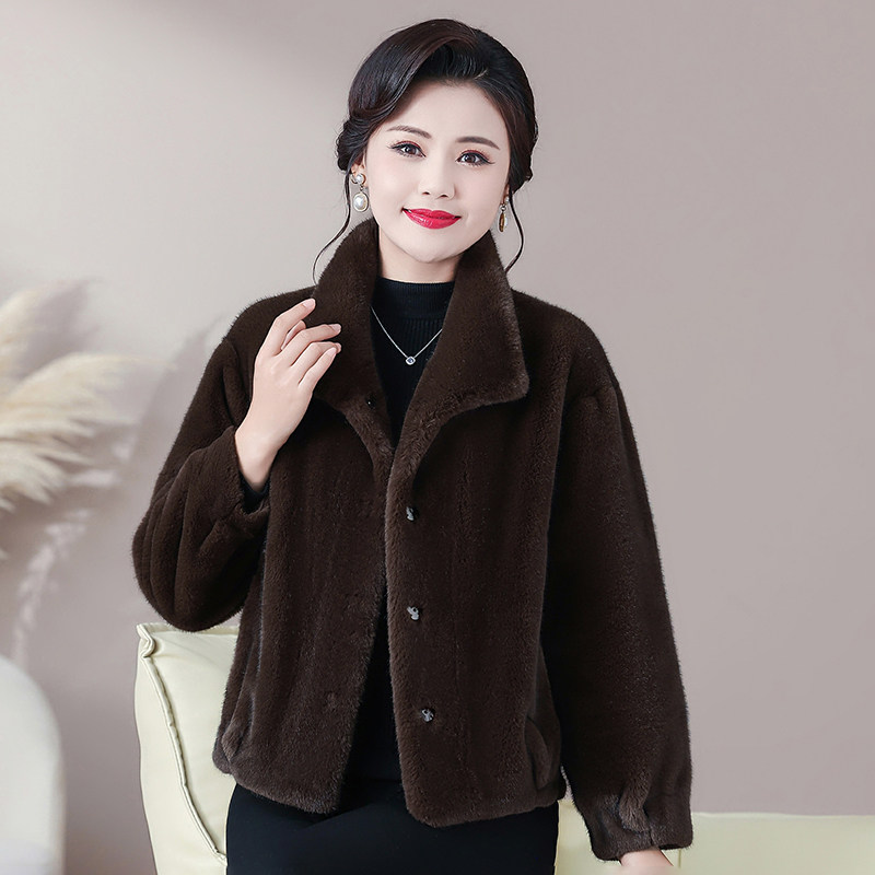 小个子妈妈加厚皮草短款水貂绒大衣中年洋气秋冬装皮毛一体外套女