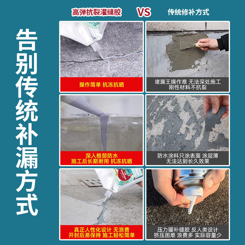 水泥地面裂缝修补剂屋顶防水补漏灌缝胶卫生间漏水速干瓷砖缝隙