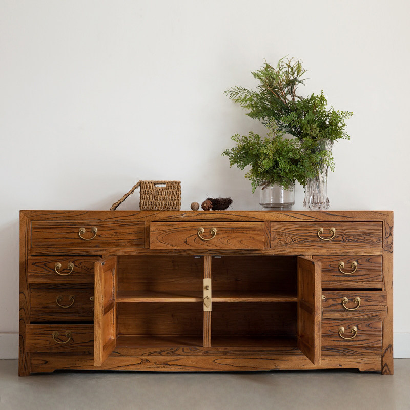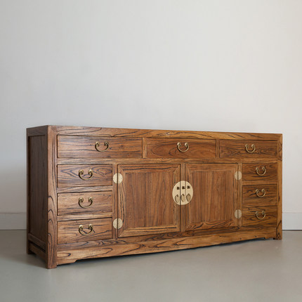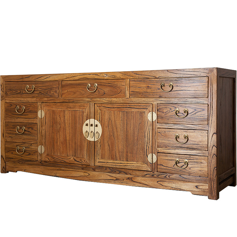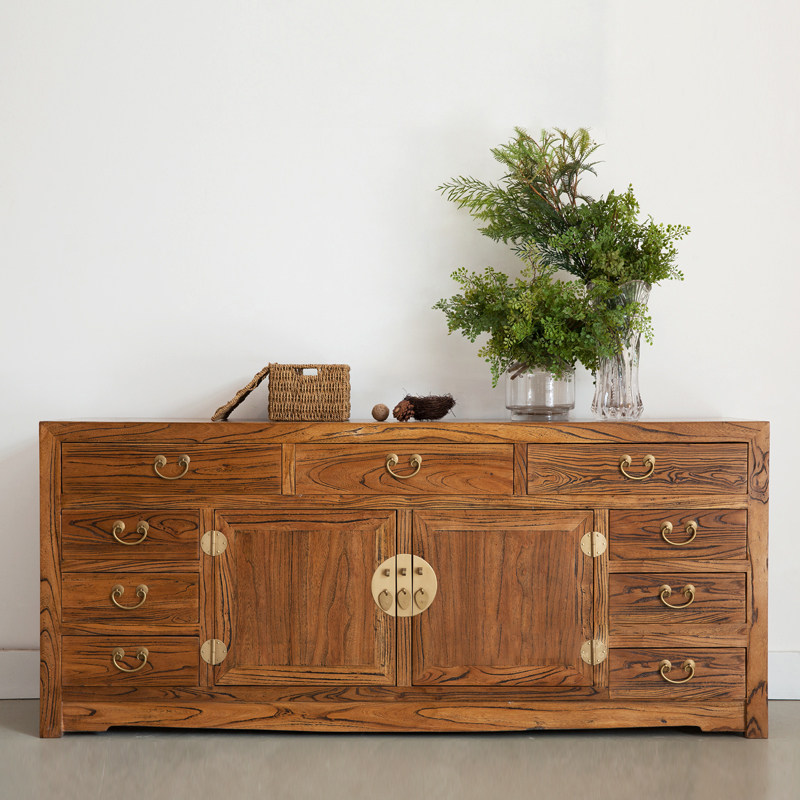 榆木九屉储物柜子现代新中式多功能餐边柜实木收纳玄关家具电视柜