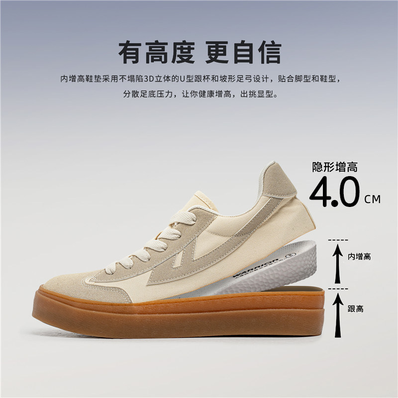 回力德训鞋男款内增高4CM透气低帮男士休闲运动鞋子厚底帆布板鞋