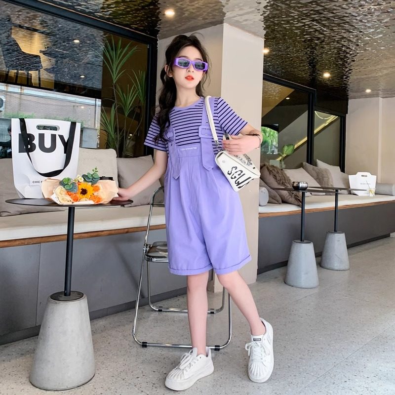 女童夏装套装2024新款儿童洋气时髦女大童夏季炸街背带短裤两件套