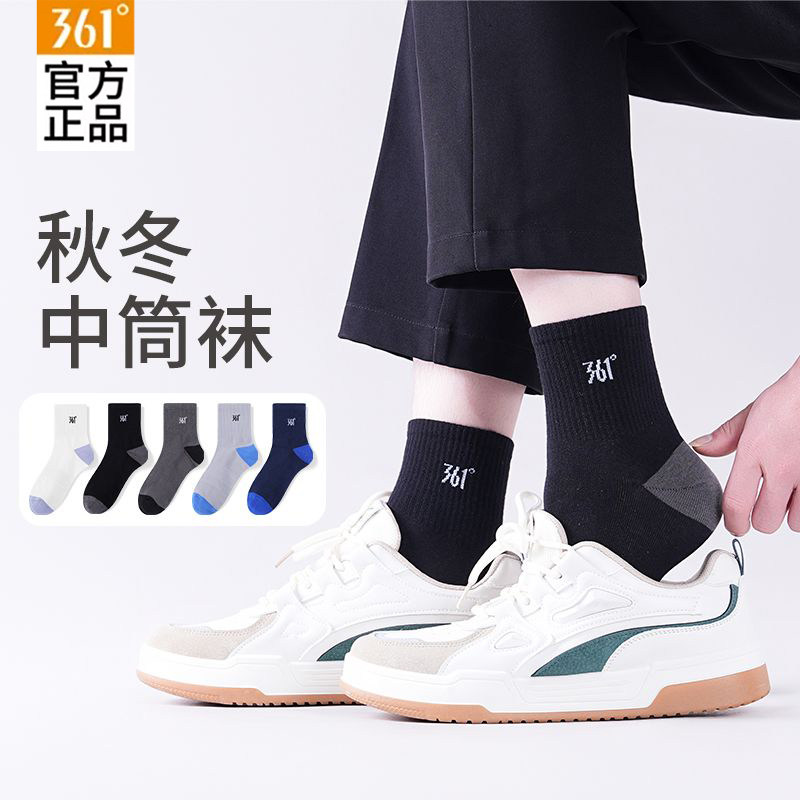 361男袜官方正品秋冬新款中筒袜防臭吸汗透气棉袜男士运动休闲袜