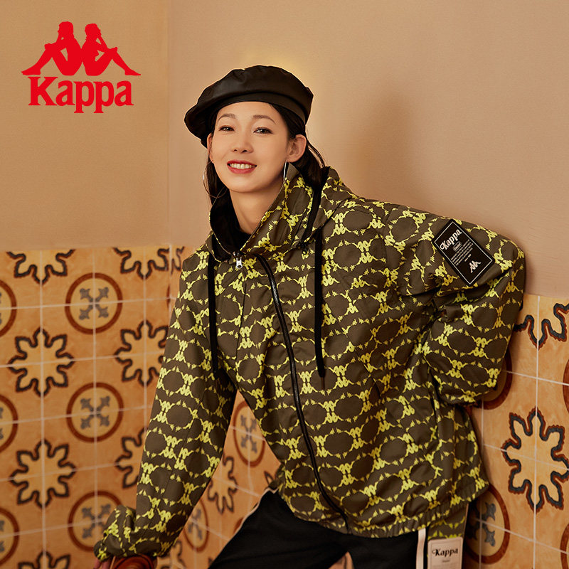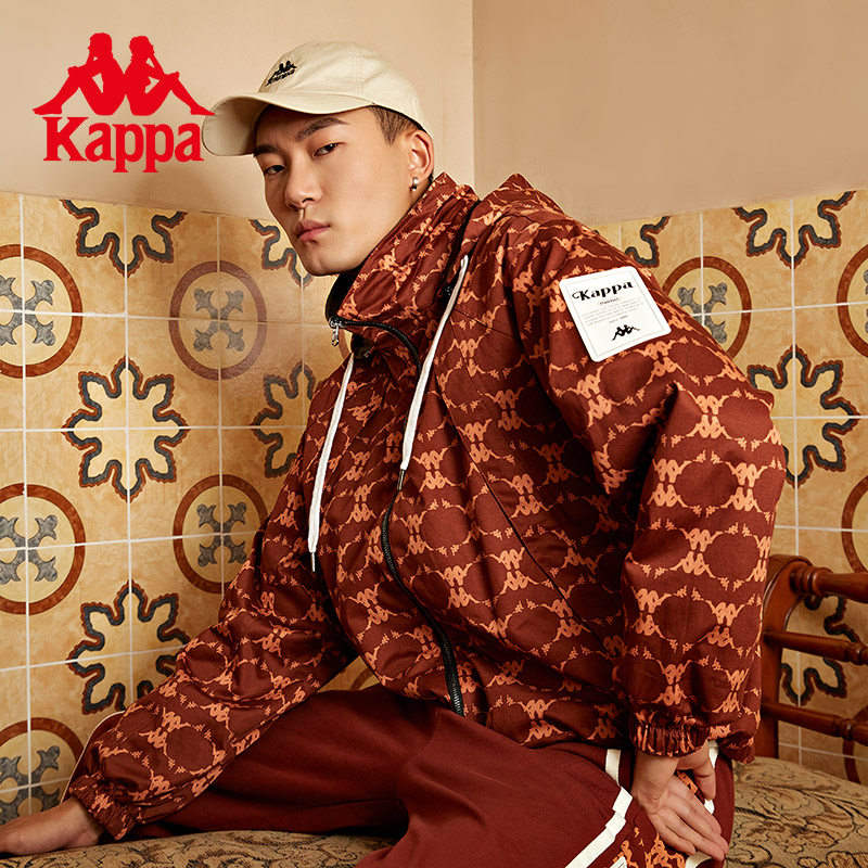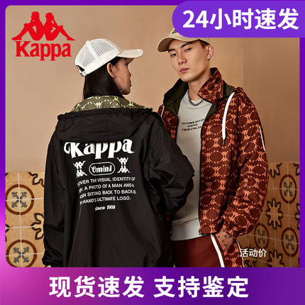 Kappa卡帕复古足球老花防风衣男女两面穿梭织连帽外套K0BZ2FJ15D